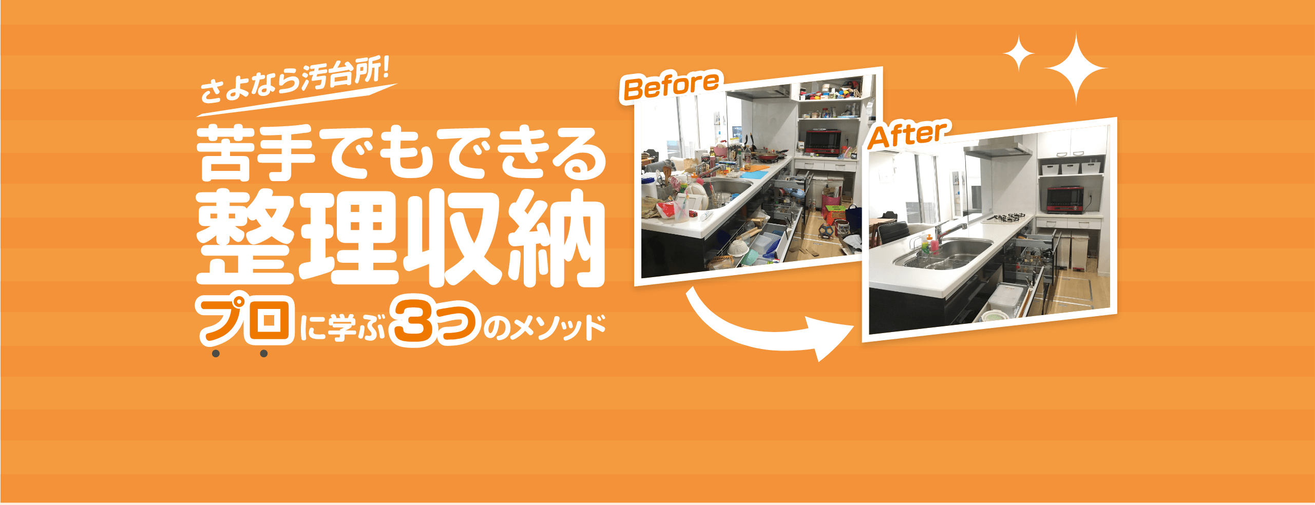 プロの整理収納アドバイザーが教えるメソッドを大公開!自分だけではうまく整理収納できないとお悩みの方には、プロが自宅にきてサポートしてくれる特別な収納サービスもお教えします!家族で楽しく片付けるヒントも満載。整理収納の苦手意識をこの機会に克服して、人を招きたくなるような、あの美しいキッチンを取り戻しましょう。