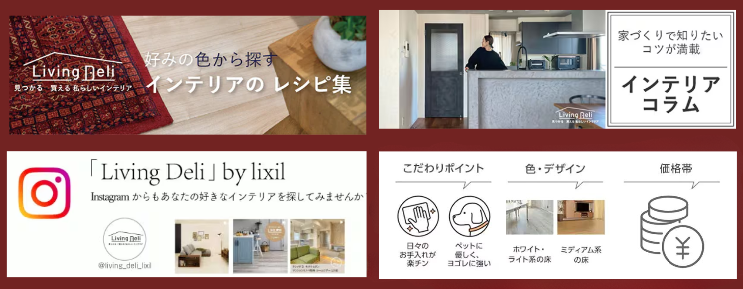 LIXILのリビング製品をはじめ、好みのドア、床の色からインテリアコーディネートを探したり、暮らしにまつわる連載コラム、インテリア施工事例がご覧いただけます。