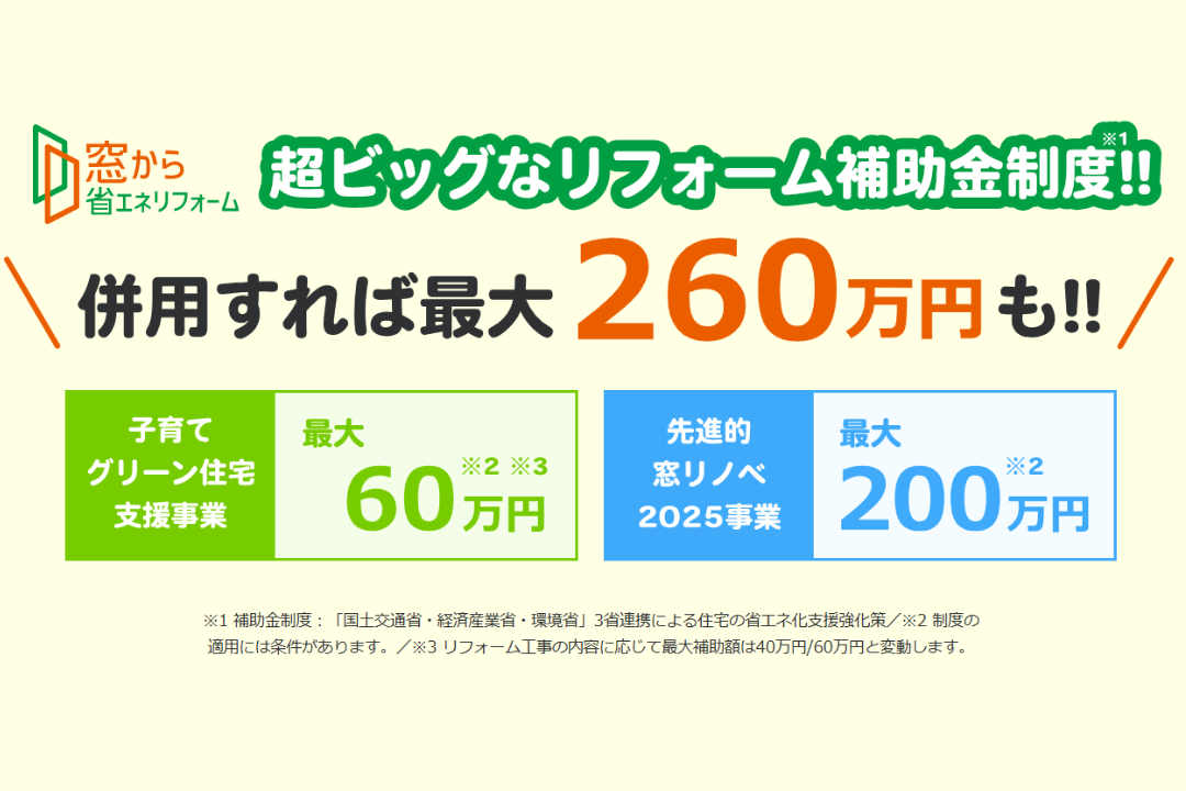 超大型補助金が2025年も実施することが決定されました。昨年と同額規模の予算で、断熱・省エネ、防犯で窓リフォームが気になっている方はもちろん、トイレや浴室、水栓など水回りのリフォームも一緒ならさらにお得になるこの機会に是非ご検討ください!