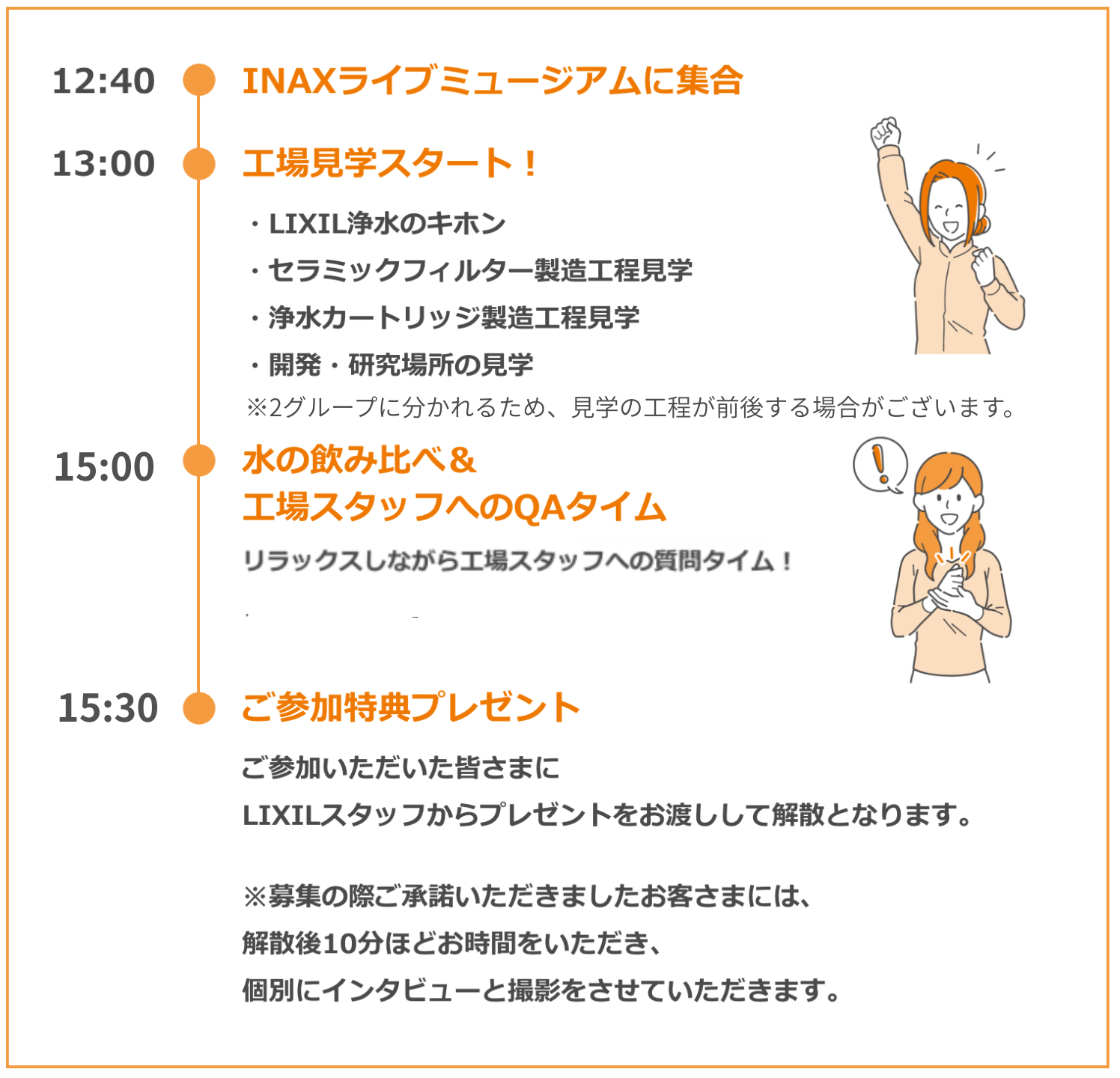 ・工場見学の内容の変更、スケジュールが前後する可能性がございます。
