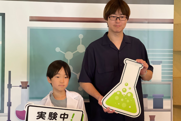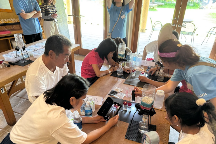 隣では、お母さんやおばあちゃんが優しく手を添えたり、お父さんやおじいちゃんと一緒に「これは何色にしようか?」と楽しそうに相談したりと、ご家族みんなで協力して実験に取り組む姿が、会場を温かい雰囲気で包んでいました。