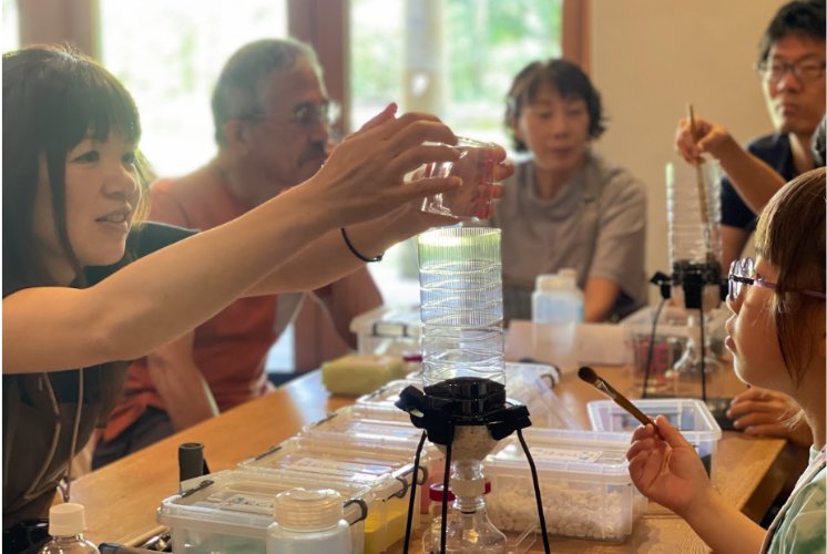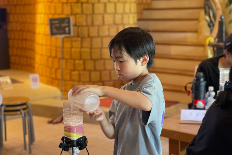 特にカラフルな砂は、何色も混ぜて楽しんだり、お気に入りの色をチョイスするなど、それぞれの個性があふれるオリジナル浄水器を完成させていました。