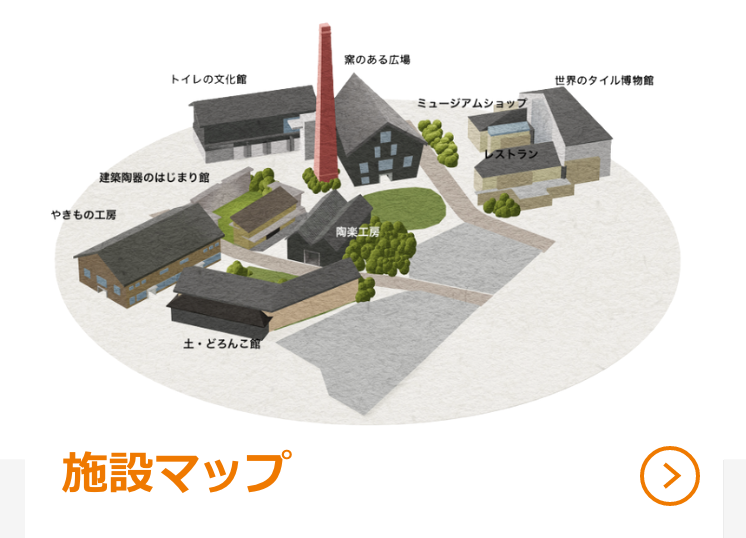 歴史のある窯や煙突を今に伝える資料館、世界のタイルを集めた博物館、やきものづくりが体験できる工房など、1日では体験し尽くせない7つの施設が皆さまをお待ちしています。