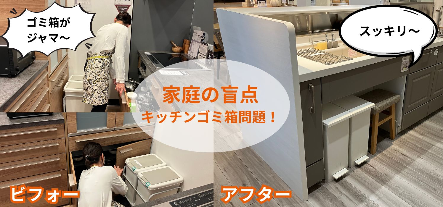 そこで私たちが「今のゴミ箱はどこに置いていらっしゃいますか?」とお尋ねすると、「食器棚の前に置いてます…」と、ちょっとした不便に慣れてしまっているご様子でした。
