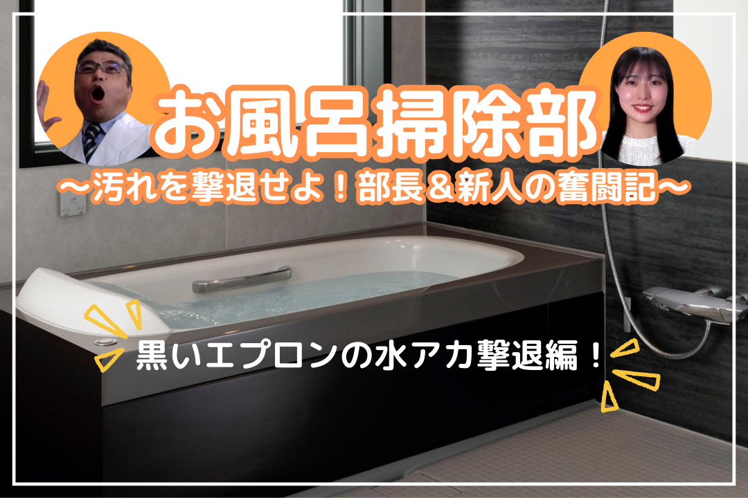 【お風呂掃除部 Vol.10】黒いエプロンの白いポツポツ水アカを排除せよ!